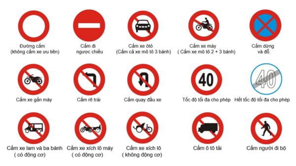 Với câu hỏi biển báo, chỉ cần nhớ nhóm chính: biển cấm – biển nguy hiểm – biển hiệu lệnh – biển chỉ dẫn.